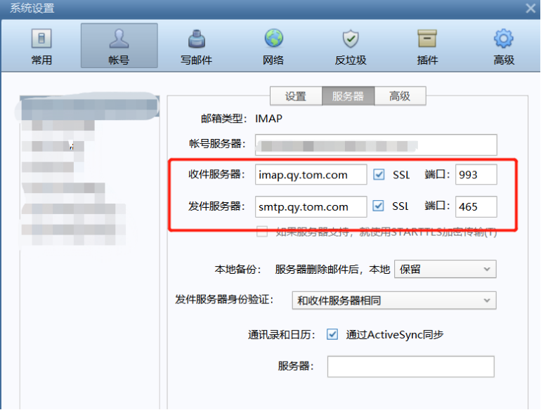 从客户端登录时要注意服务器的配置,TOM企业邮箱的常规配置如下,除此之前如果在域名中设置了CNAME,就可以用自己官网域名配置客户端了,大公司一般都是这么设置,彰显公司形象。