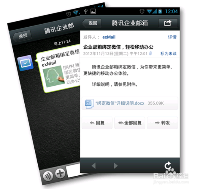 腾讯企业邮箱另外一个方便的功能就是可以跟QQ和微信进行绑定,在QQ、微信上也可以收到来信提醒。这样即使你正在家里,或者路上只要正在使用QQ或者微信也不会错过工作邮件。