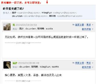 ② 邮件的会话模式如何显示:企业成员经常会在邮件中就某个主题讨论多次,来来回回收发很多封邮件,如果单个邮件一个一个的查阅,或者搜索某些内容,会因为相 同的主题而无法顺利找到其中最想要找的邮件内容,这样效率就会降低,如果使用了会话模式,就会将所有相关主题的邮件合并成为一封邮件,收件人与发件人也一 起合并到邮件的“参与人”中,下面就是依次显示出发件人和邮件内容。所有的邮件在一封邮件的显示中一目了然,最大程度地提高了工作效率,很明显会为企业成 员节约很多工作时间,进而为企业创造出更多的成果和价值。